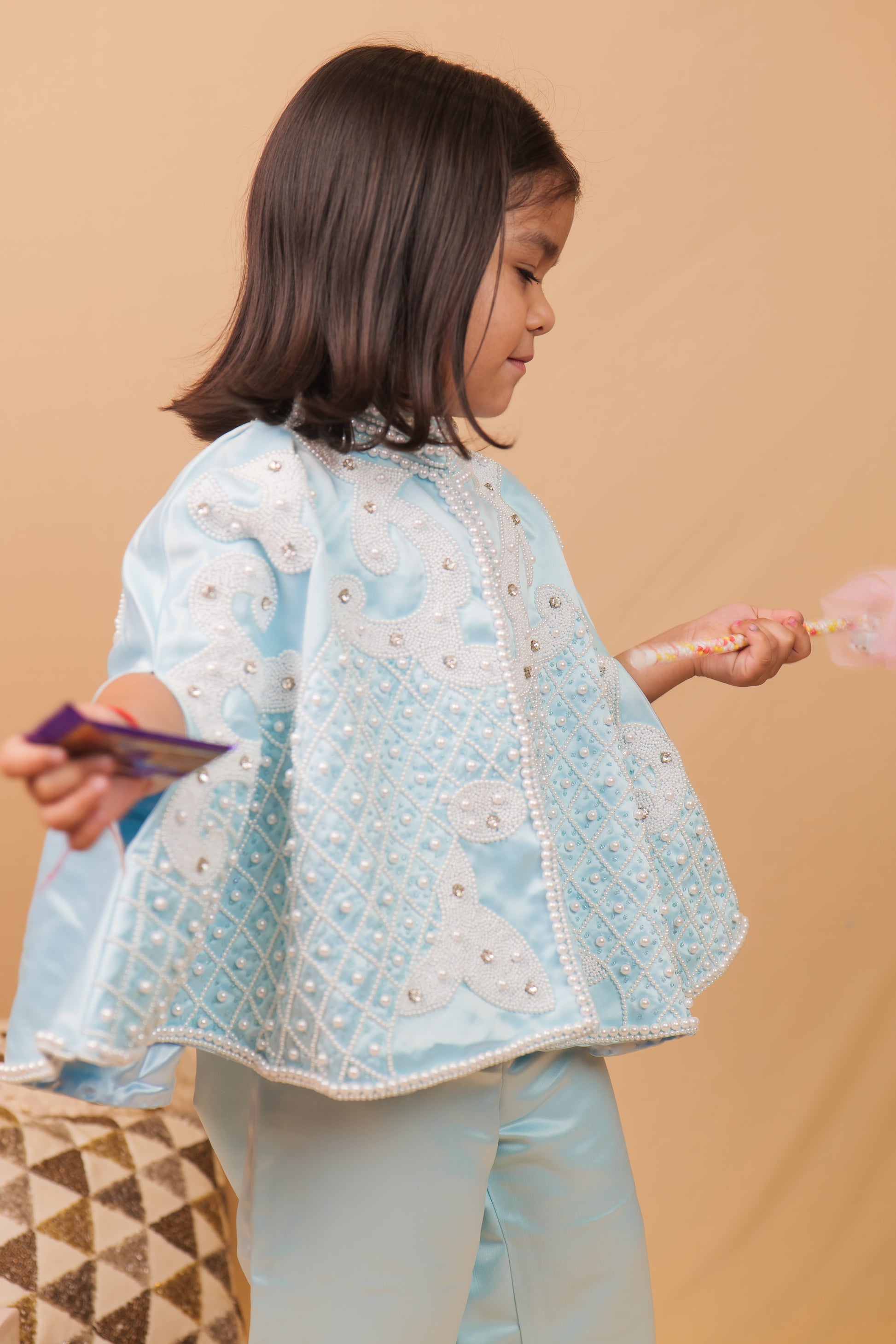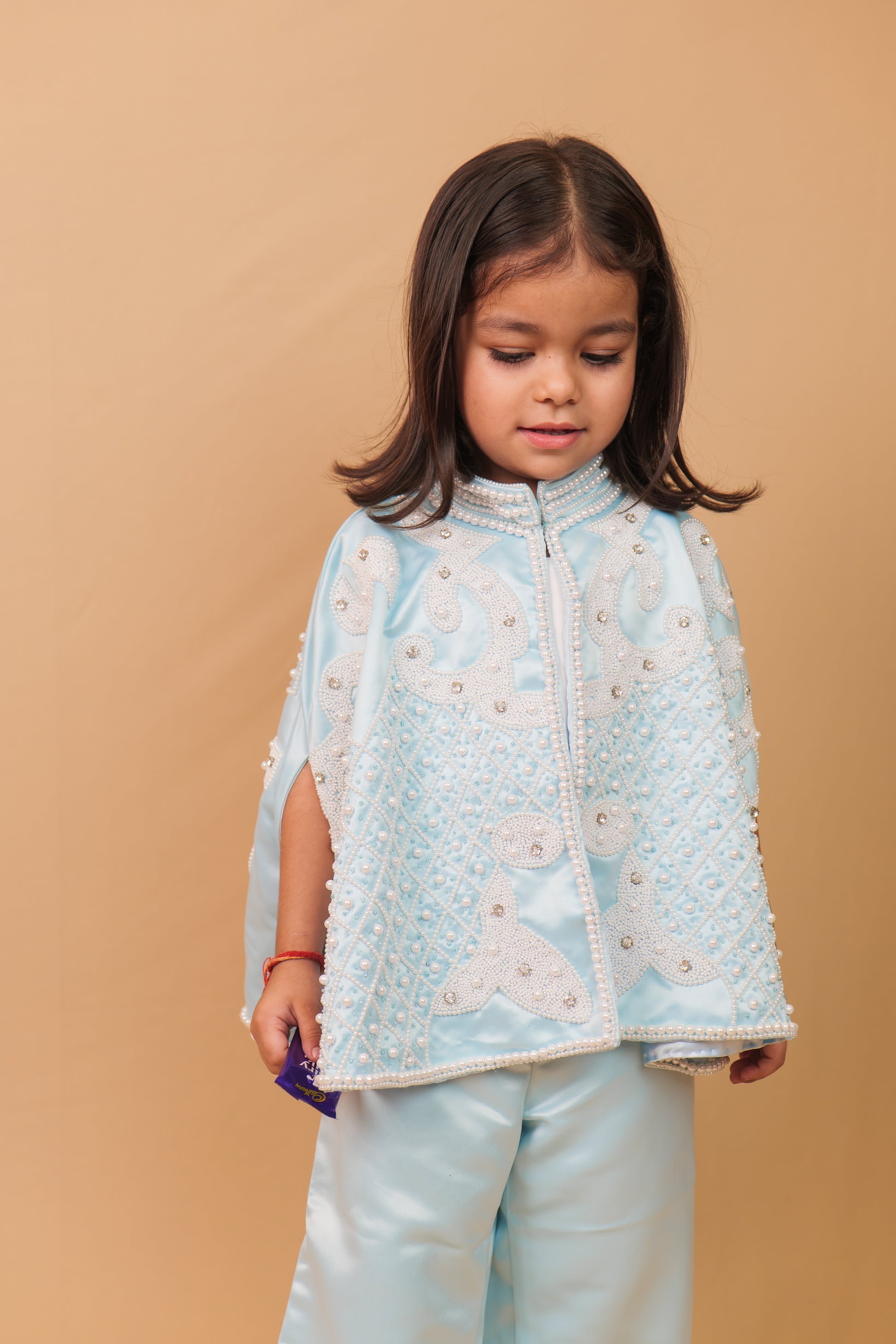 Anne Blue Pearl Embroidered Indo-Western 3-Piece Co-ord Set