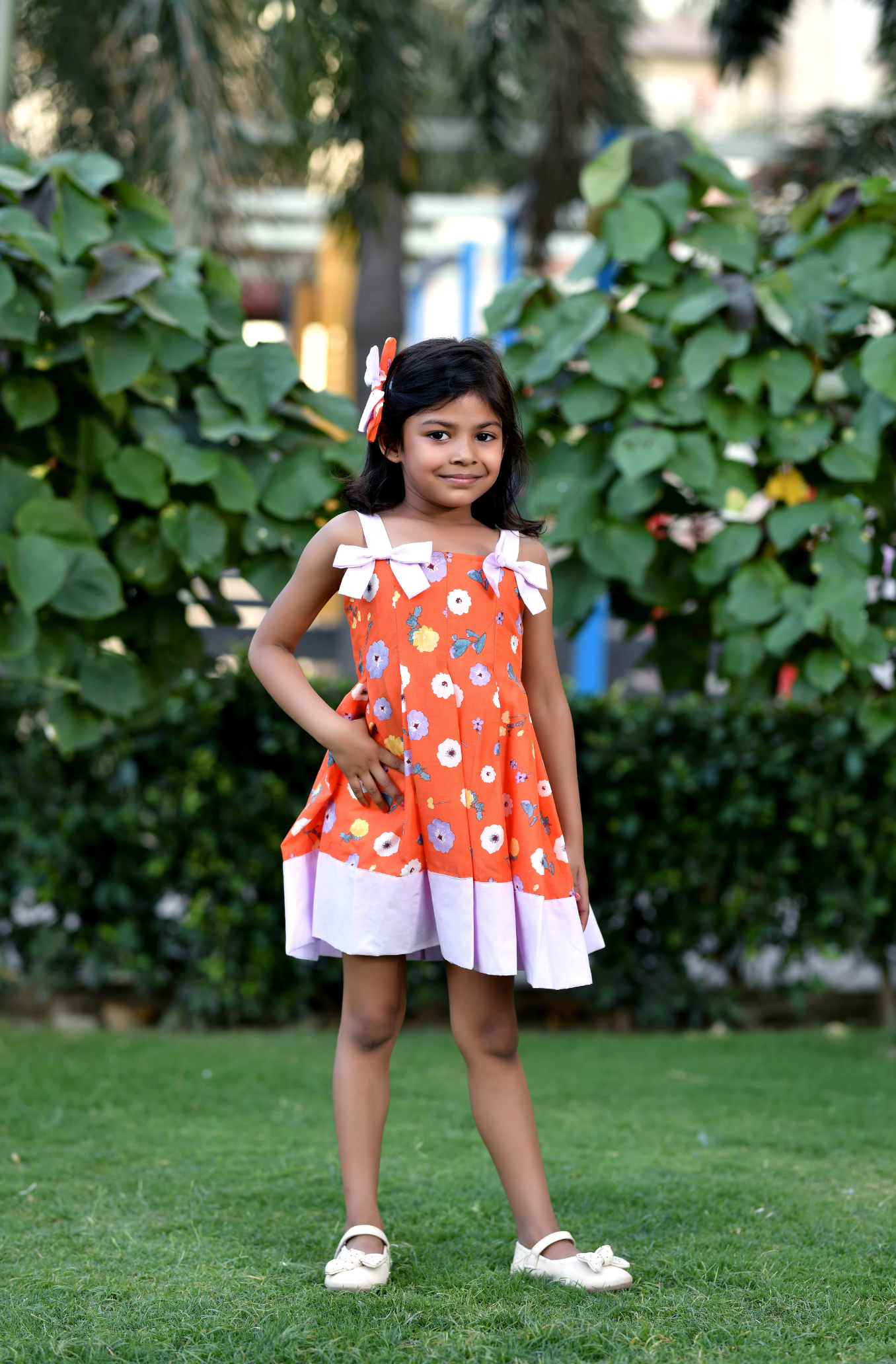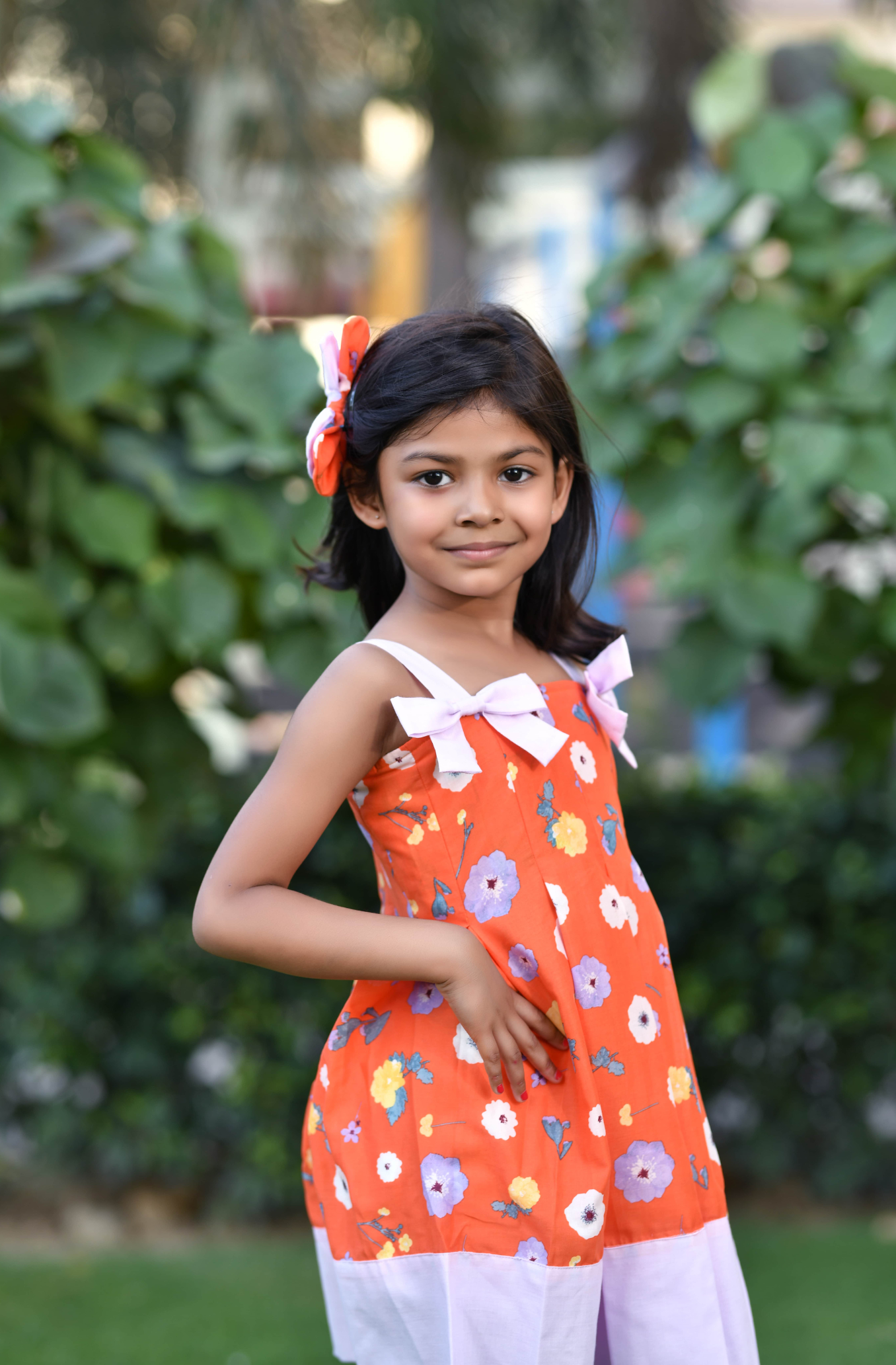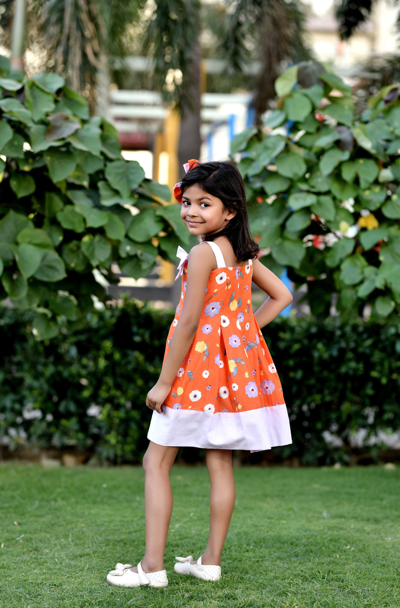 Do you know summer just got so much cooler and fashionable with our orange dress. Made out of cotton, this dress is a complete fuss free and comfortable for your child to be in it whole day.