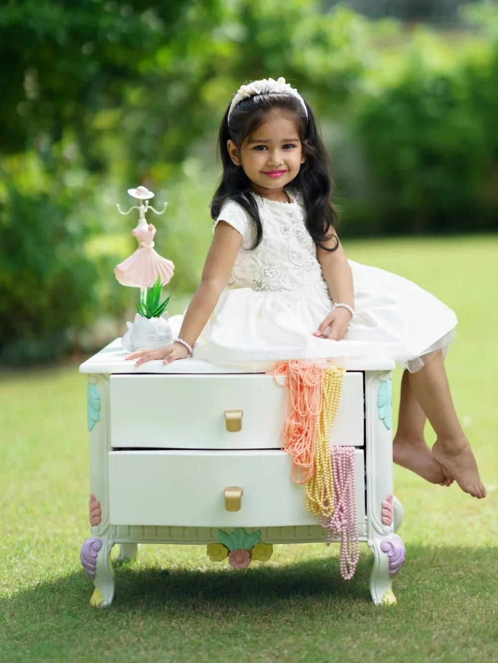 white satin dress Hand embroidered all over Threads, rhinestones, pearls Cotton lined for comfort